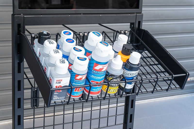 *8 slots each layer (row), 6 bottles per slot, totally 48 shock/diff oil bottles per row