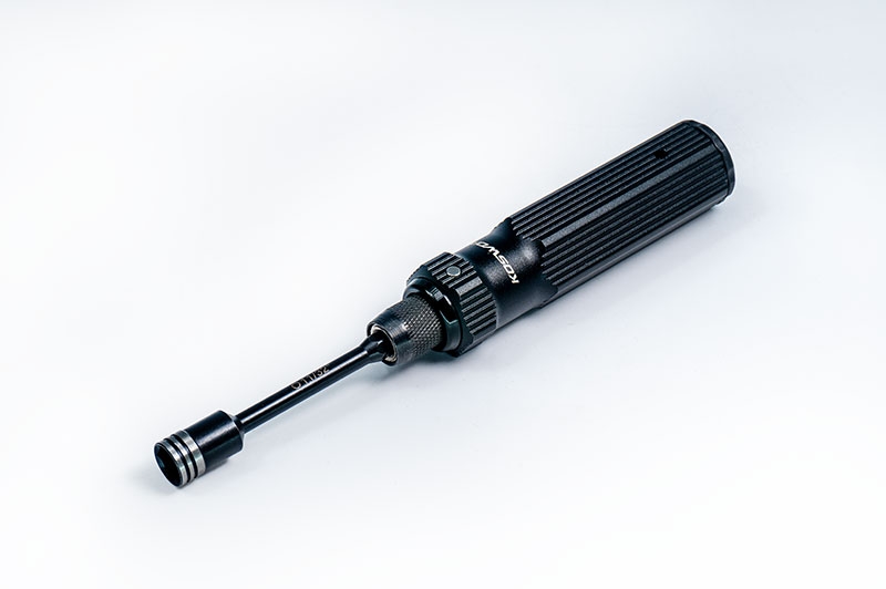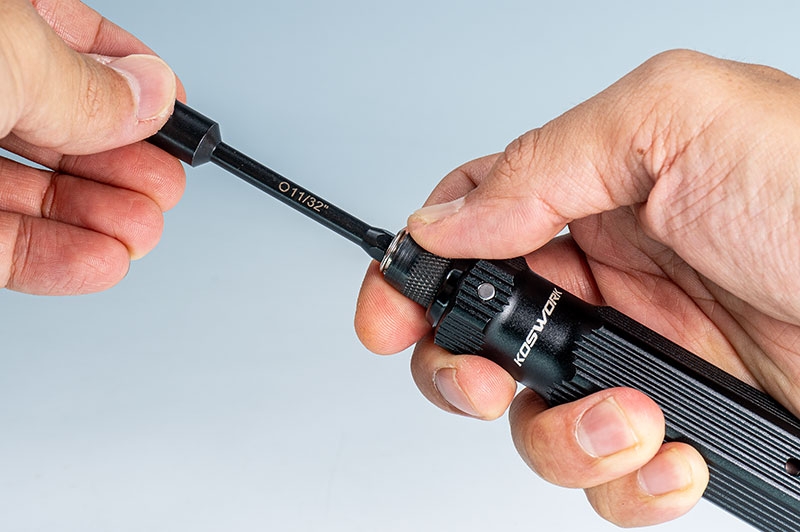 (As supplied, the 11/32″ nut driver is installed at the front of the handle)